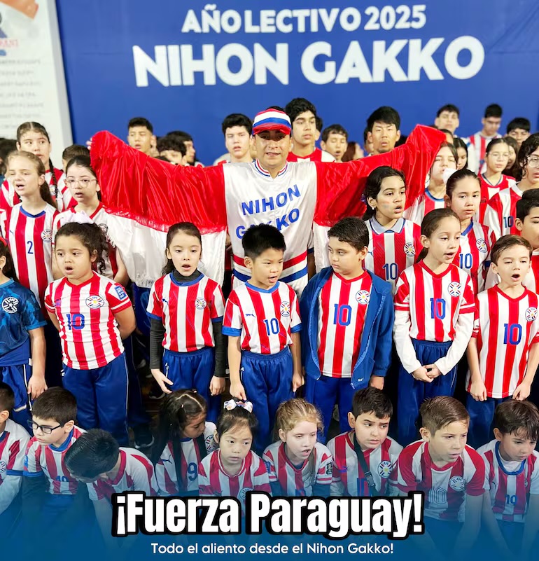 En el colegio japonés Nihon Gakko, alumnos y docentes vistieron la camiseta tricolor y vibraron con orgullo al entonar a coro el himno nacional paraguayo. El ambiente estuvo marcado por el fervor, la esperanza y el patriotismo, en un gesto que refleja la ilusión de todo un país.